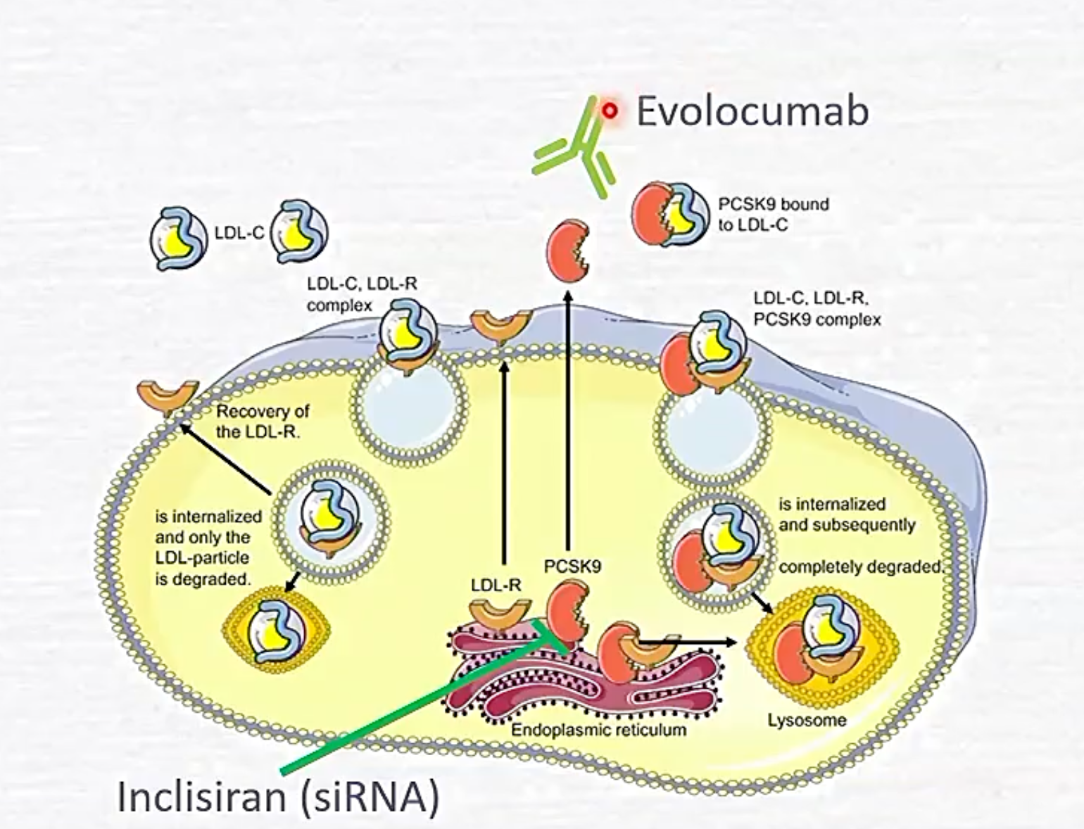 cholesterol uptake inhibitors: ezetimibe PCSK9 monocloncal inhibitors: evolocumab Bile acid binding agents