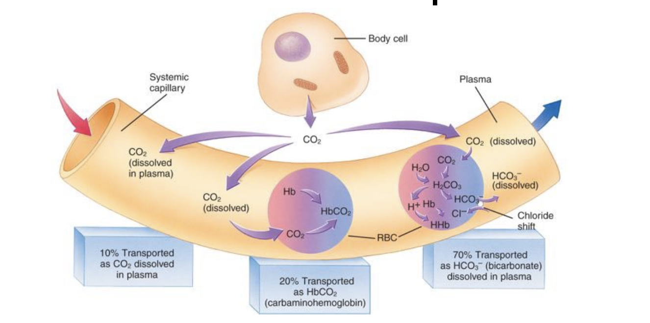 Carbon dioxide is transported in 3 ways: